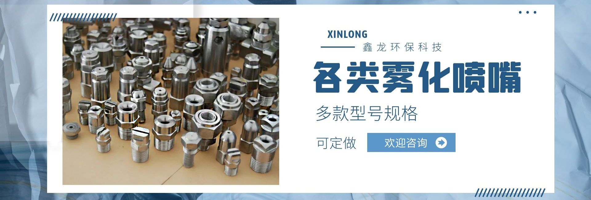 深圳市鑫龍環(huán)保科技有限公司是專(zhuān)業(yè)從事各類(lèi)噴嘴研制和開(kāi)發(fā)的廠家,技術(shù)力量雄厚,生產(chǎn)工藝先進(jìn),檢測(cè)手段齊全,管理制度嚴(yán)格,產(chǎn)品質(zhì)量穩(wěn)定可靠。產(chǎn)品種類(lèi)多達(dá)上萬(wàn)種,適用于涂裝處理、環(huán)保、線(xiàn)路板、電子電力、汽車(chē)制造、家電制造、造紙業(yè)、紡織業(yè)、防火等行業(yè);我公司產(chǎn)品不僅為國(guó)內(nèi)多家大中型企事業(yè)選用,還配套外銷(xiāo)日本、美國(guó)、東南亞等國(guó)家和地區(qū)。我們具有本行業(yè)前衛(wèi)的噴嘴制造設(shè)施,在我們裝備完善的噴嘴實(shí)驗(yàn)室,可以進(jìn)行各種類(lèi)型噴嘴的測(cè)試研究,以?xún)?yōu)化噴霧系統(tǒng)的性能。我公司提供專(zhuān)業(yè)技術(shù)、應(yīng)用和售后服務(wù),幫助用戶(hù)選擇適合的噴嘴,并保持噴嘴在良好條件下運(yùn)行。從噴嘴選擇指導(dǎo),到量身定制的設(shè)計(jì),直到噴霧顆粒的測(cè)試分析,在每個(gè)訂單中都包含了我們好的技術(shù)支持,用戶(hù)反映:我司顯著的特點(diǎn)是銷(xiāo)售工程師在幫助用戶(hù)降低成本、減少加工和維修時(shí)間,降低工業(yè)用水和化學(xué)劑消耗等方面有著非常豐富的經(jīng)驗(yàn),使用戶(hù)可以更經(jīng)濟(jì)、更有效的解決實(shí)際問(wèn)題!我們繼續(xù)堅(jiān)持專(zhuān)業(yè)是金的理念,制造好的噴嘴是我們永遠(yuǎn)的追求和努力!